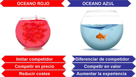 En contraposición, los océanos azules representan mercados inexplorados, donde las reglas de juego aún no se han definido. Así, las organizaciones pueden crear y generar nueva demanda.