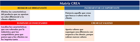La metodología de los océanos azules es clave para trazar la estrategia personalizada para maximizar su potencial. Se basa en cuatro acciones principales, representadas en la matriz CREA: